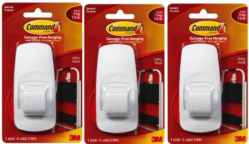 Command Jumbo Plastic Hook with Adhesive Strips, 3-Hooks