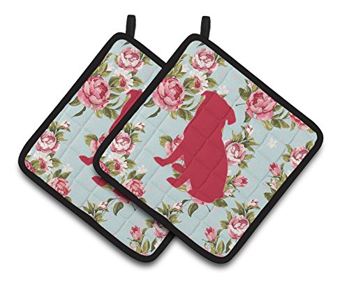 Caroline's Treasures BB1084-RS-BU-PTHD Pug Shabby Chic Blue Roses Pot Holders (1 Pair), 7.5" x 7.5", Multicolor