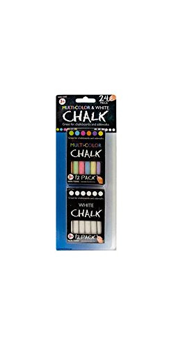 Studio : Kole Imports Publisher : Kole Imports Product Description Set of 24. Includes twelve white chalks and twelve multicolor chalks. Safe and non-toxic. Made from cardboard and synthetic. Multicolor color. 10.25 in. L x 4 in. W x 0.75 in. H (0.29 lbs.). Great for chalkboards and sidewalks. 0
