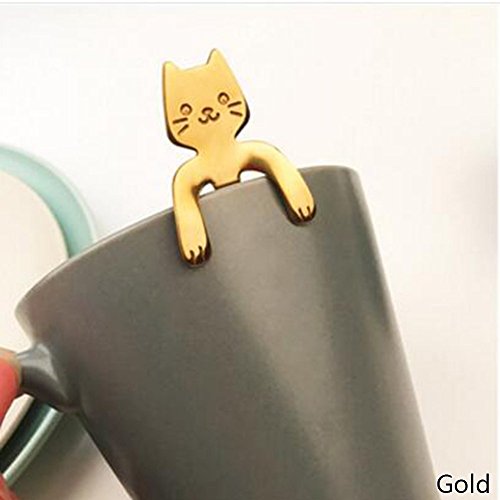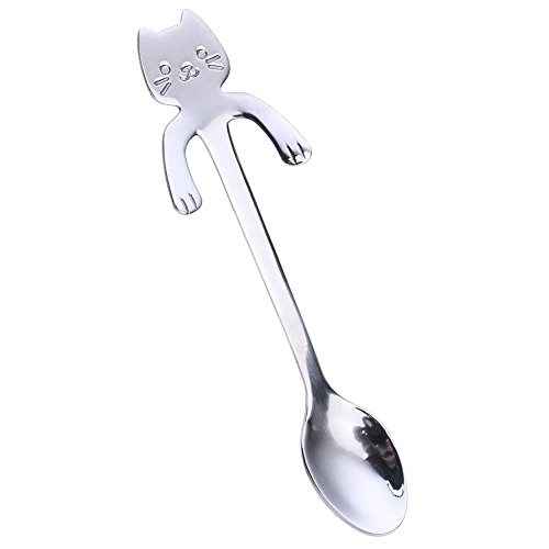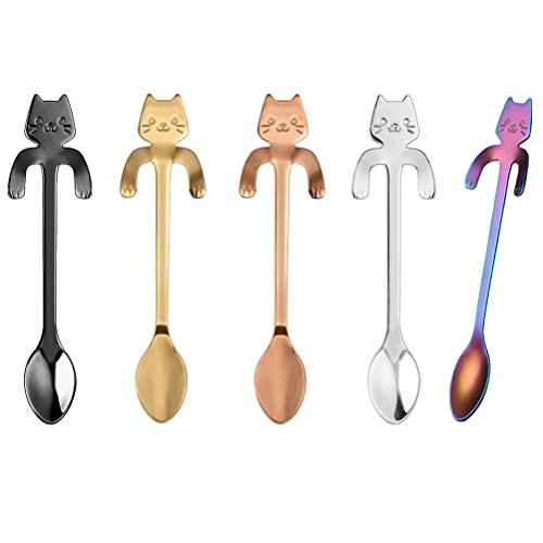 Gydthdeix 5 Pcs Stainless Steel Mini Cat Kitten Design Stainless Steel Coffee Tea Stirrer Dessert Drink Mixing Milkshake Spoon Tableware Flatware Gadgets Kitchen Tools Set