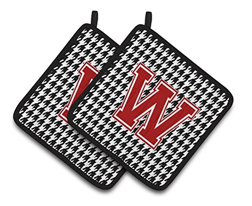 Caroline's Treasures Letter W Monogram - Houndstooth black Pair of Pot Holders CJ1021-WPTHD, 7.5HX7.5W, Multicolor