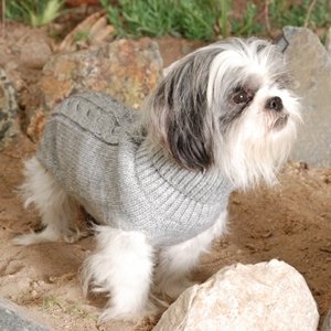 Premium 100% Alpaca Wool Exquisite handcrafted designs. Alpaca wool is softer, lighter weight, warmer, and stronger than normal sheep wool, it is also hypoallergenic and not as itchy. Luxurious to the eye Luxurious to the touch. All Sweaters are made in Peru by hand. A classic and elegant turtleneck design that features a charming "Trenzas" stitch down the center. This stunning piece is also available with hind leg straps to prevent it from rolling up on windy days. | Size | Back Lenght Inch | Weight | Back Length in Cm | | XXSmall | 8-9 | 2-5lb | 20-22.5 | | XSmall | 9-11 | 5-10Lb | 23-27 | | Small | 12-13 | 10-18Lb | 30.5-33 | | Medium | 14-16 | 18-29Lb | 35.5-40.5 | | Large | 17-19 | 29-40lb | 43-48 | | XLarge | 20-22 | 40-60Lb | 50.5-56 | | XXLarge | 23-25 | 60-80Lb | 58.5-63.5 |