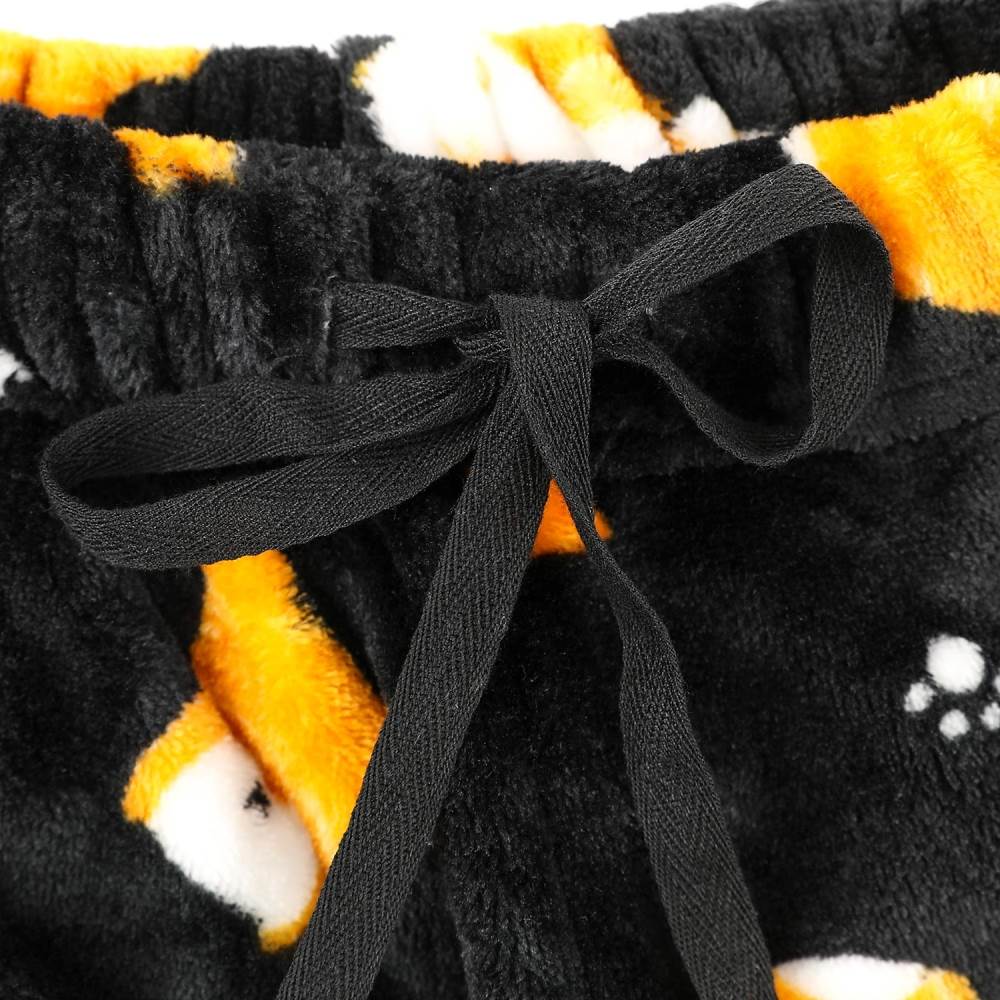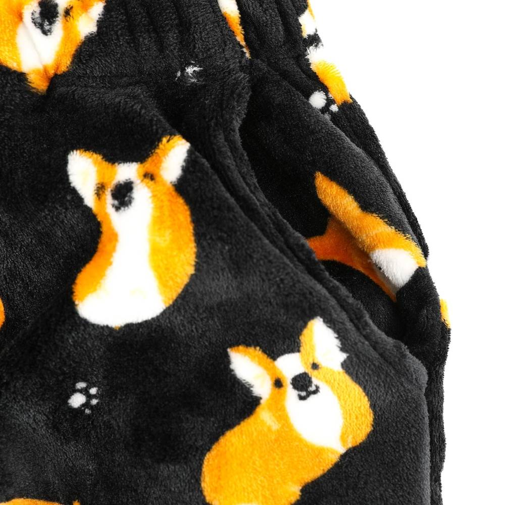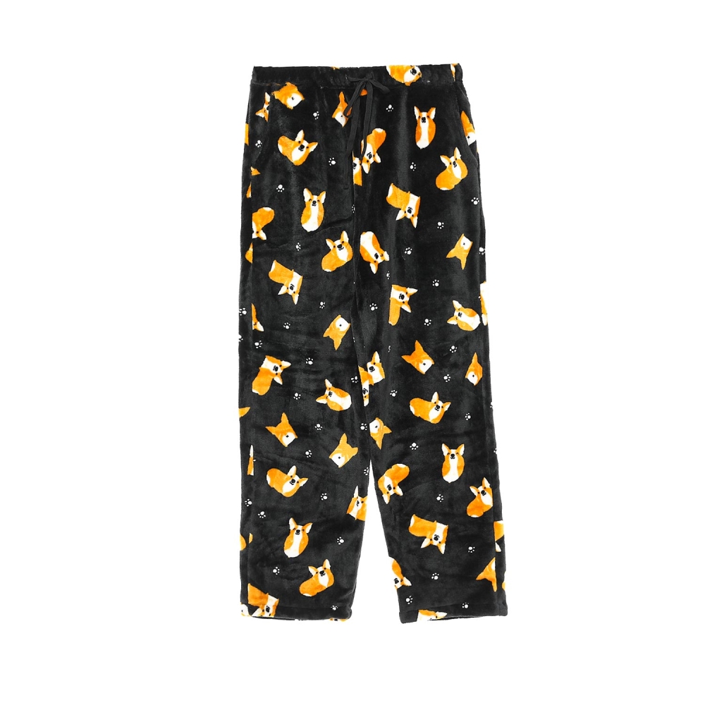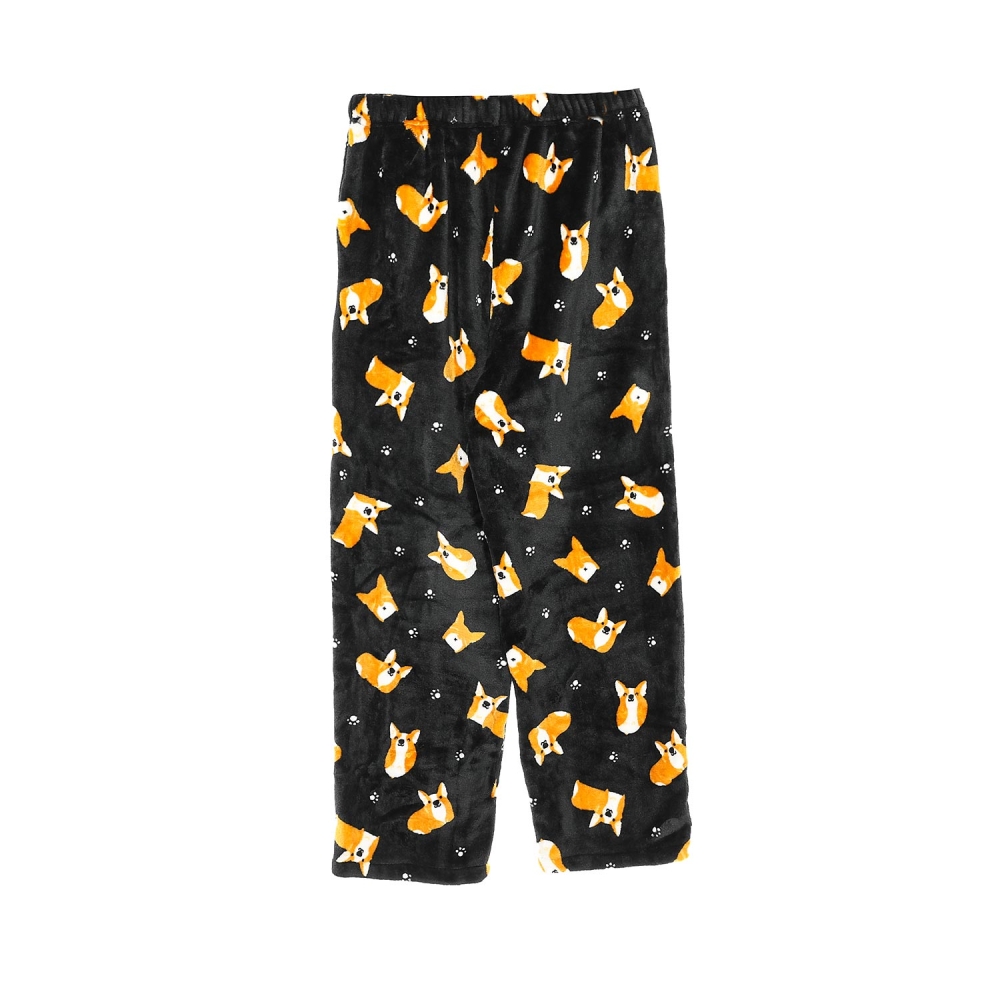 여운 웰시코기와 발자국 나염의 수면바지.