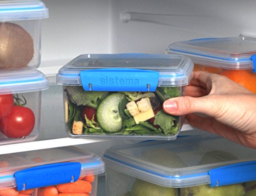 Sistema Fresh Collection Food Storage Containers, 5 Cup, 3 Pack, Clear/Marine Blue