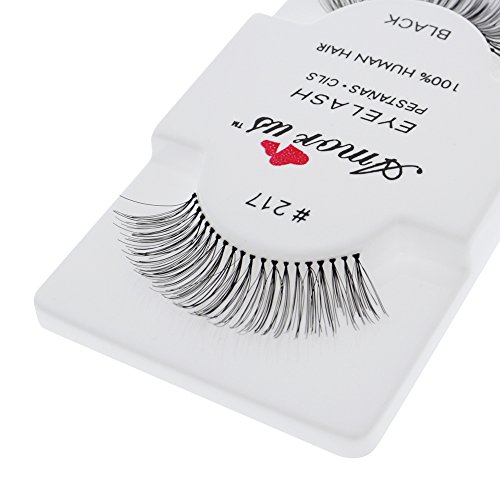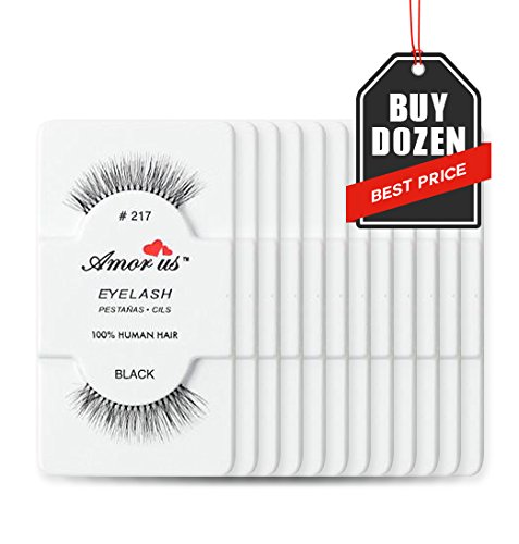 Amorus 12 Pairs Multipack #217 False Eyelashes Dozen Set 100% Natural Hair Black Handmade Comfortable Reusable Strip Fake Lashes Pack