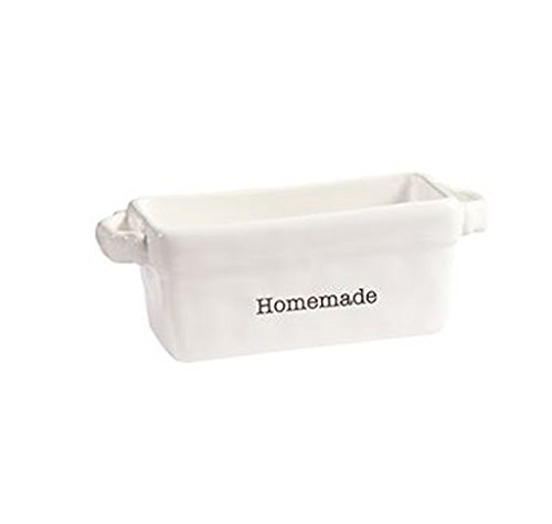 - Ceramic oven-to-table mini-loaf dishes with chunky handles feature debossed "Homemade" sentiments and arrives with silverplate handled, wood blade spreader.
