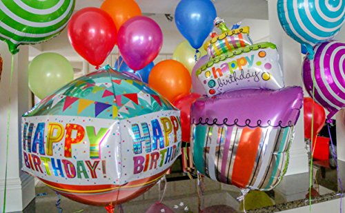 -. Feature : You have searched for the perfect birthday party decorations, and now you have found your answer. What better way to celebrate than with our Happy Birthday Balloon Set? / VALUE: Whether for your kids 1st birthday in the park or dad's geriatric boogaloo in the home....these birthday party decorations are perfect for any age! / QUALITY: The high quality foil balloons will definitely catch the attention of your loved ones when they shimmer in the light. These are perfect birthday party supplies that will fit any themed party. Your combo set comes with 6 lollipop balloons, 1 birthday cake, 1 happy birthday cube, 32 multi color latex balloons. / GUARANTEE: We stand by our balloons with a 100% money back guarantee. If these birthday balloons do not make you and your loved ones smile, then your money back.