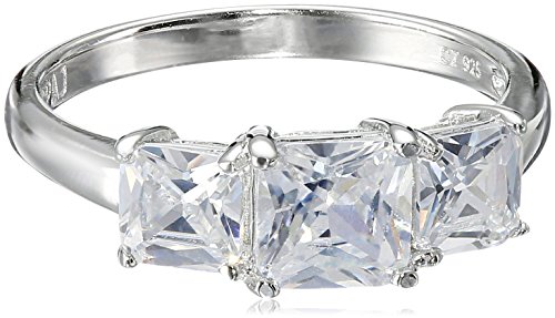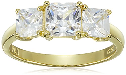 18k Yellow Gold Plated Sterling Silver Square Princess Cut Cubic Zirconia Yesterday, Today, Tomorrow 3-Stone Ring (1.35 cttw), Size 6