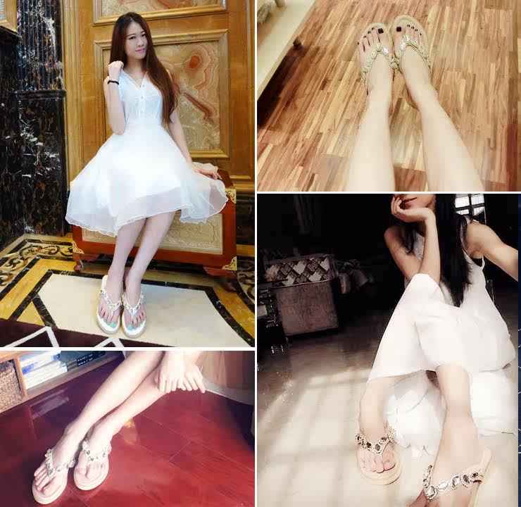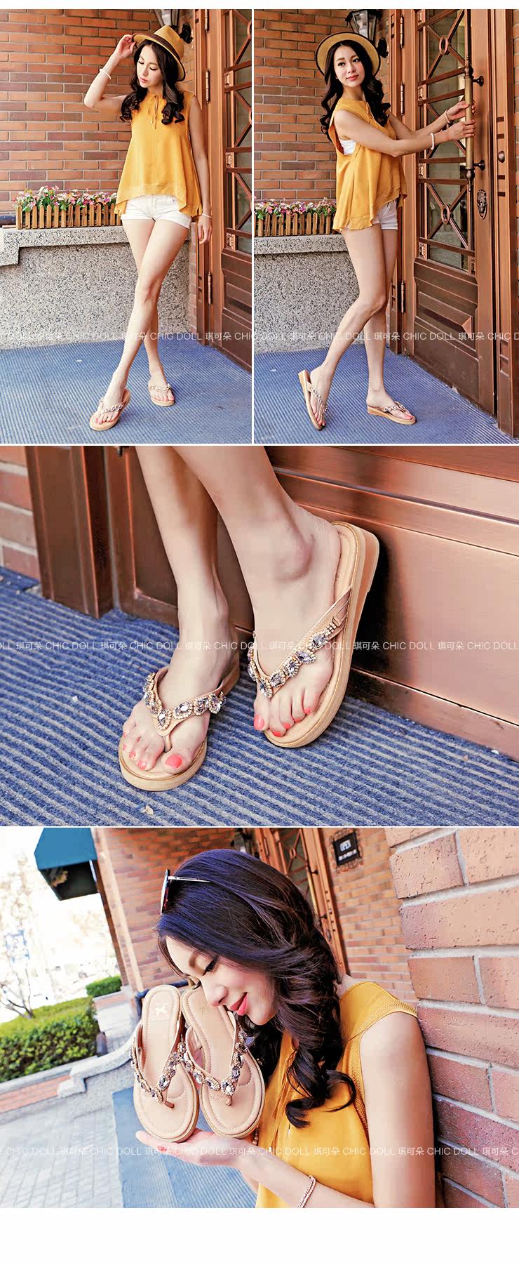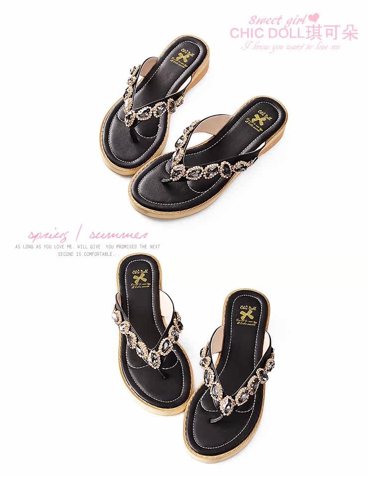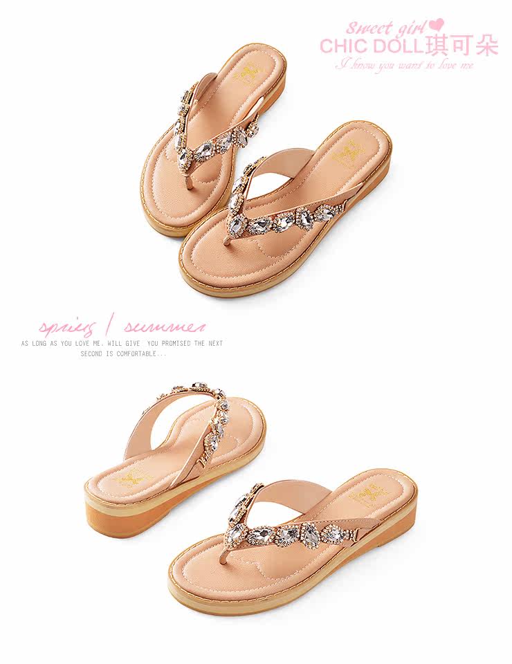 夏季新款水钻平底夹趾舒适休闲百搭凉鞋