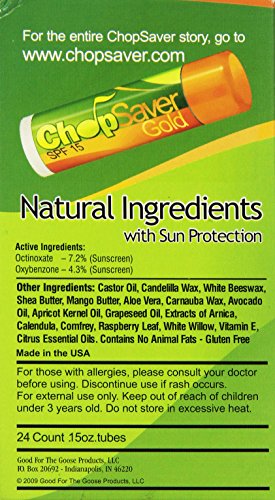 ReleaseDate : 2015-06-22 Studio : Chop Saver Publisher : Chop Saver Binding : Health and Beauty Product Description Chop Saver is a natural alternative for lip care needs. The formula is so effective, it is recommended by dermatologists for patients with chronic lip problems. Chop Saver is 100% natural. It combines the goodness of herbs with nature's finest ingredients such as shea and mango butter, aloe, vitamin e and herbs known for their ability to fight chapping, swelling and soreness. Chop Saver feels great the moment you put it on. The fragrance is a light, refreshing blend of four citrus oils. Chop Saver contains no animal fats, no petroleum and no harsh chemicals which are commonly found in other lip balms. Chop Saver is gluten free. Chop Saver relieves the painful symptoms of chapping, swelling, soreness, fatigue and inflammation of the lips caused by playing brass or woodwind instruments. Make Chop Saver part of your daily routine. Save your chops with Chop Saver. 0