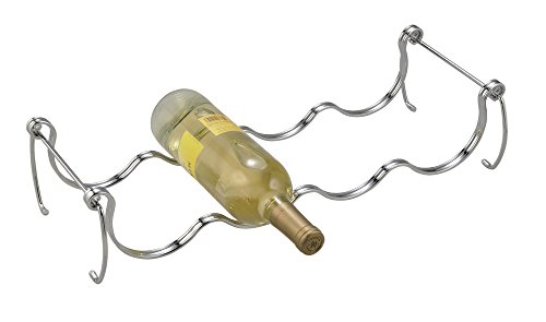 Decorative wine rack displays four bottles of wine