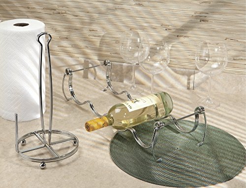 mDesign Stackable Wine Storage Rack for Kitchen Countertops - Holds 4 Bottles, Chrome