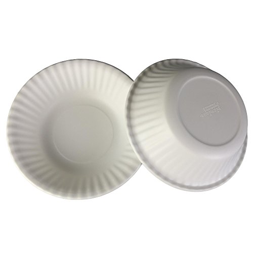 Melamine "paper plate bowls" are heavy duty, durable, sustainable, non-breakable. Made of Melamine.