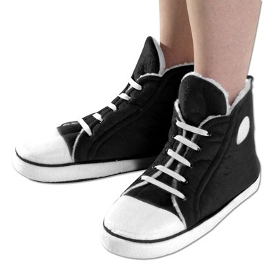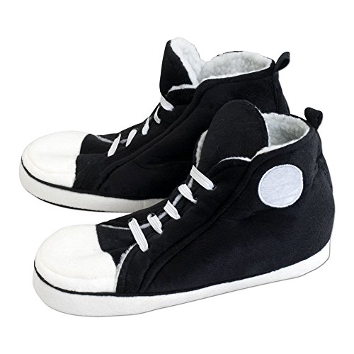 -. Binding : Apparel -. Brand : Bits and Pieces -. Color : Black -. Department : womens -. Feature : Cute novelty slippers for him or her - lounging around the house. / Designed to resemble popular high top sneakers around since the 1920s. / You'll get a kick out of these super cool sneakers slippers / Soft plush interior with EVA sole, slip resistant fabric and elastic lace up detailing. / Small Kid's (5.5-6.5) - Medium (W 8-9/M 7-8) - Large (W 10-11.5/M 9-10) -. ProductGroup : Shoes -. ProductTypeName : SHOES -. Title : Bits and Pieces-Black Hi-Top Sneaker Slippers Retro Comfy Warm-Plush Interior