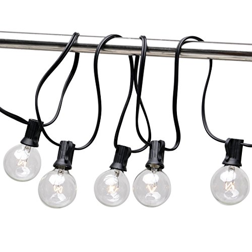 25 feet long string with 25 clear G40 globe bulbs, the bulbs have E12 candelabra socket base