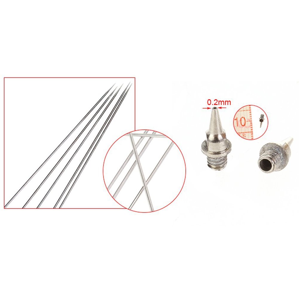 This item is a set of airbrush gun parts including 5pcs needles, 5pcs brushes and 5pcs nozzles.They are all precision-engineered tools for professionals and hobbyists.