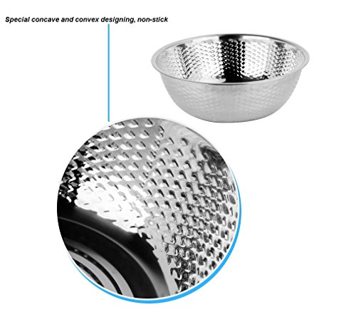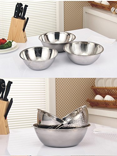• Multifunctional/Versatile: The bowls can be used for mixing, whipping, and stirring. Rather you are making cakes or dressings, these bowls will do the trick. Two bowl sizes are available - 26 cm and 28 cm. Decorative silver shine with shapes makes for a nice display when used with fruits or food.