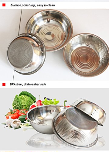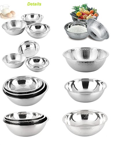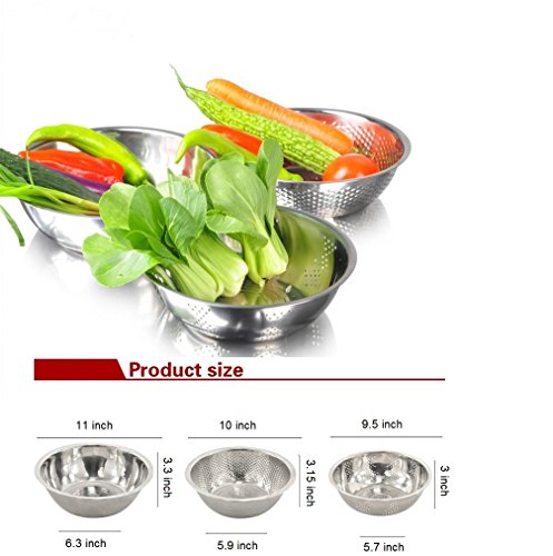 (Big Sales) TOPOKO Colander Stainless Steel Metal Round Strainer Kitchen Food Preparation Cooking Setting High Quality Mixing and Storage Bowl Pasta Rice Set