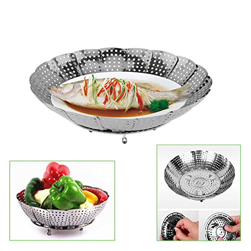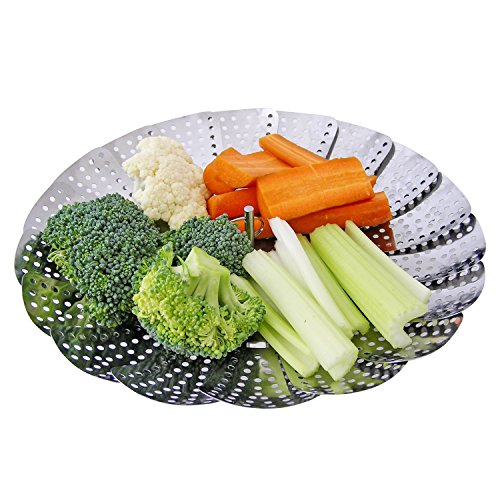 (Big Sale) Topoko 100% Stainless Steel Vegetable Steamer, Pasta Steamer, Folding Collapsible Basket for Various Size Pots