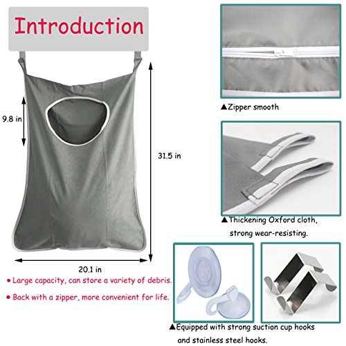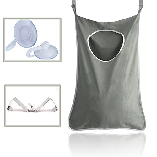 WoSite Wall Door Closet Hanging Laundry Bag - Hanging Laundry Hamper with 2 Stainless Steel Hooks + 2 Sucker Hooks - Easy to Hold Dirty Clothes and Release Space (Dark Grey)