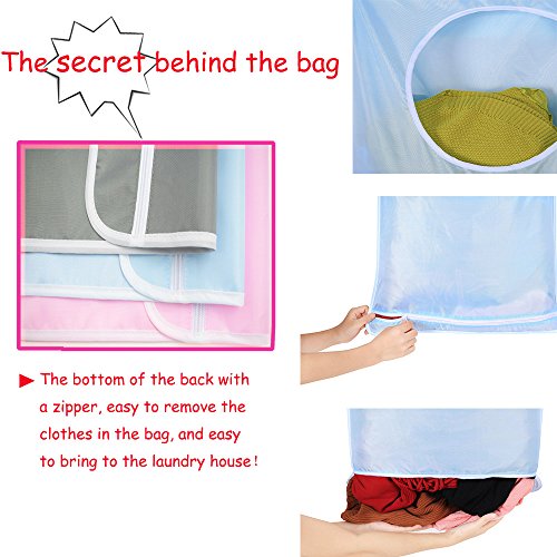 ►CONVENIENCE and USEFUL: Back side with a zipper, easy to drop out the clothes. The hanging laundry bag design good, do not occupy the place