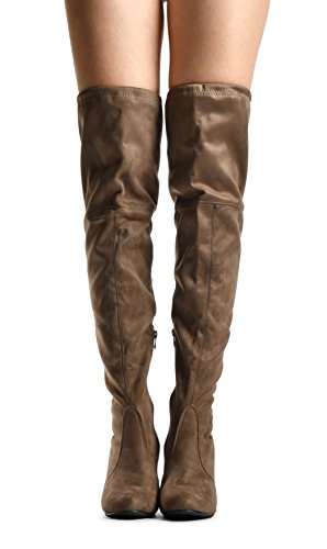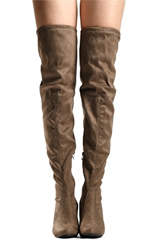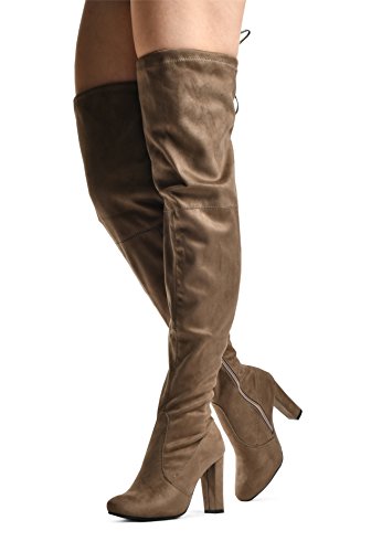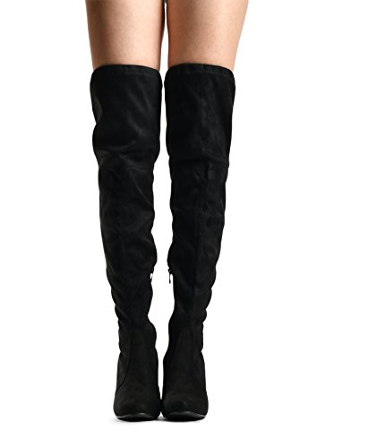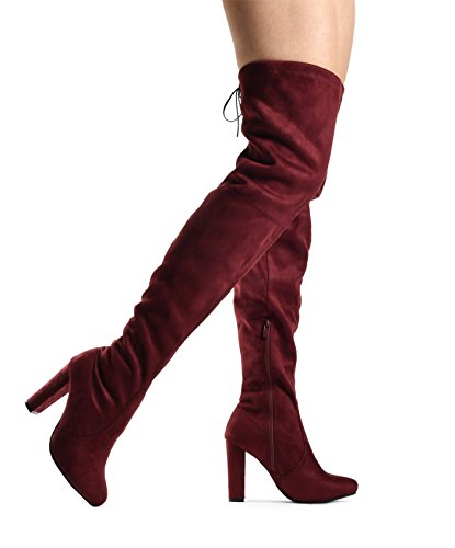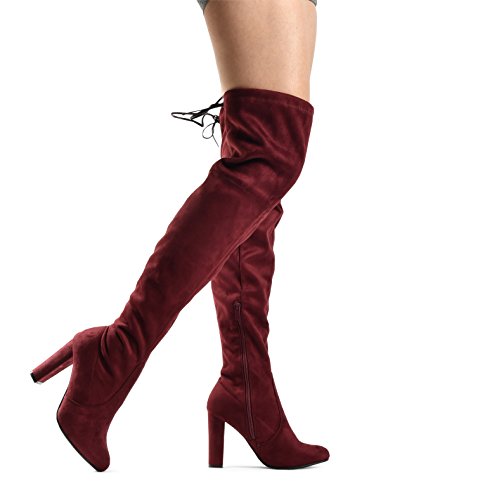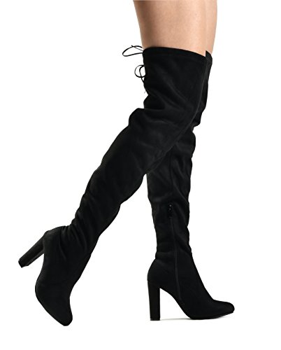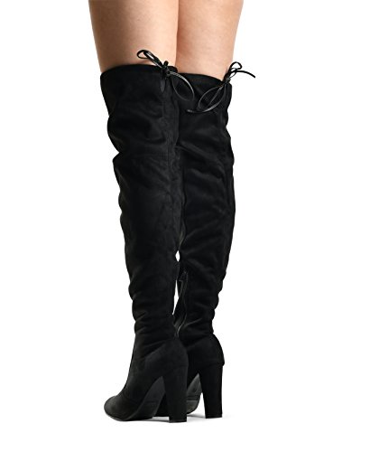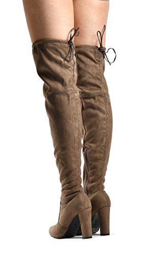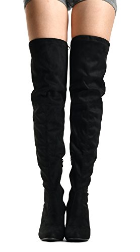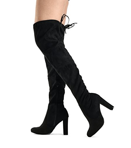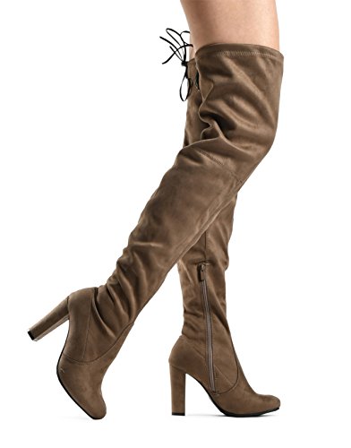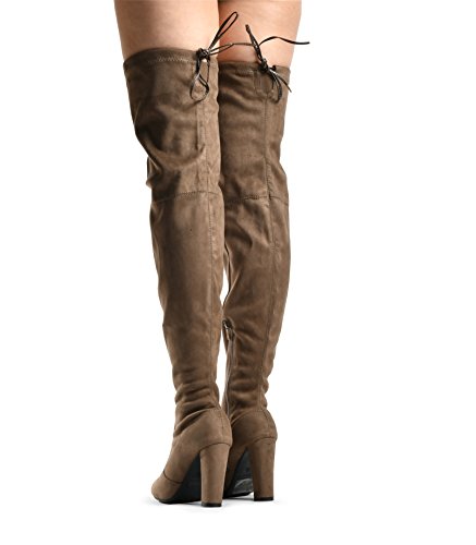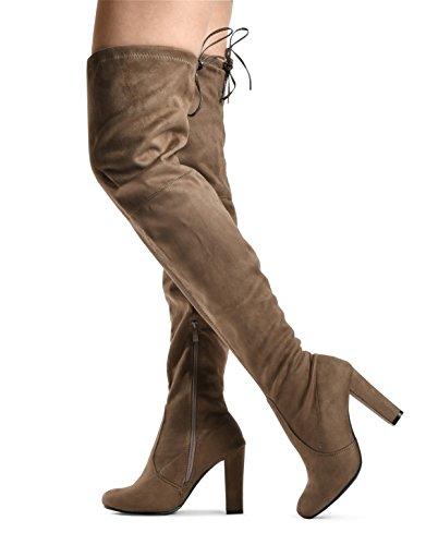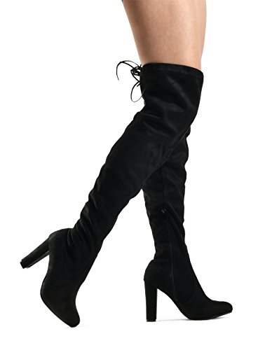 Binding : Apparel Product Description At LUSTHAVE, we put effort into the detailed craftsmanship in our products. Our goal is to transfer fashion into your daily essential wardrobe. These "Ashley" over the knee boots feature a round toe front faux suede construction, stiletto heel, cushion padded insole, and side. There are many over-the-knee boots out there, but with our new desgin this year adding the elasity band on the back of the shaft, it will give extra support to prevent the boots from sliding off. The PU drawstrings not only adds a contrast in material from the suede-effect of the boots but also adds more durability. You'll be sure to leave a lasting impression when you elevate your alluring look with the Ashley over-the-knee boots! 0