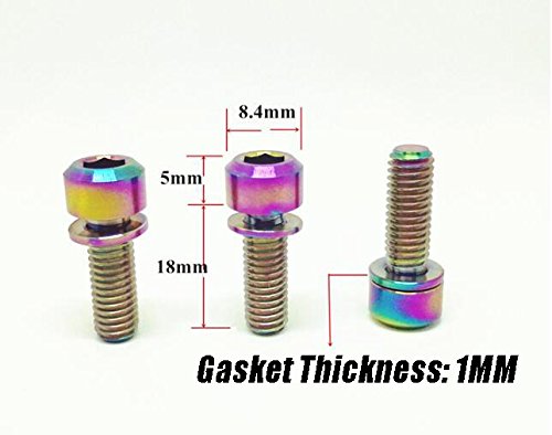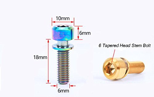 Specifications: Material: TC4 Titanium Alloy Color: Titanium, Rainbow, Golden (optional) Package Weight: approx. 15g Size: M5 x 18mm Quantity: 6pcs