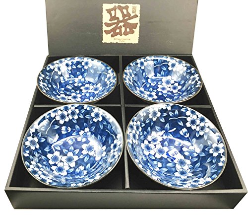 (Gifts Decors)/Kitchen Dining/Tableware/DIRECT FROM USA/Made in Japan Blue Floral Pattern Glazed Ceramic Rice Meal Soup Dining 5.5" Diameter Bowl Set S...
