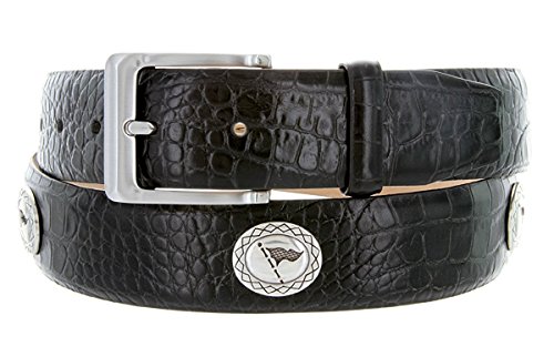 (Hagora)/Accessories/Belts Buckles/DIRECT FROM USA/Hagora Men 1-3/8" Wide Italian Calfskin Alligator Golf Concho Metal Buckle Belt