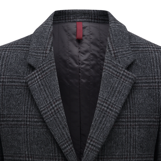 - 컬러 체크 패턴 디자인의 클래식한 남성 코트.