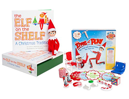 - PRODUCT SPECIFICATIONS: Package Contains (1) The Elf on the Shelf: A Christmas Tradition Blue Eyed Boy Scout Elf with Illustrated Storybook and (1) The Elf on the Shelf: Scout Elves at Play with 15 Elf Sized Tools and 60 Pages of Ideas