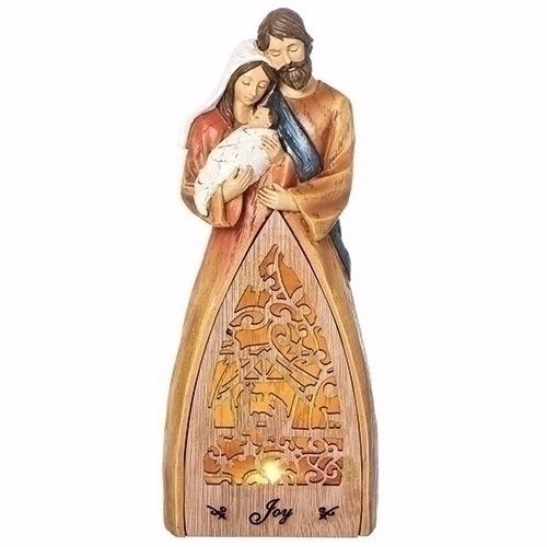 Joy Christmas Holy Family Light Up LED 9.5" Laser Cut Wood Resin Tabletop Figurine