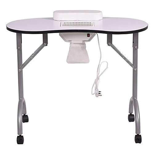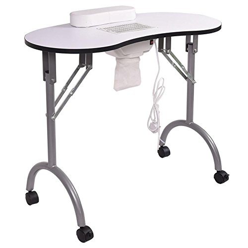 Feature: Brand new and high quality Practical and professional manicure station for nail beauticians Comfortable and thick wrist cushion Solid MDF panel with steel frame, durable and sturdy A vented surface with fan that helps to pull dust downwards Simple and east for transporting for folding features Saving space when do not use With a carry bag for storage and transporting