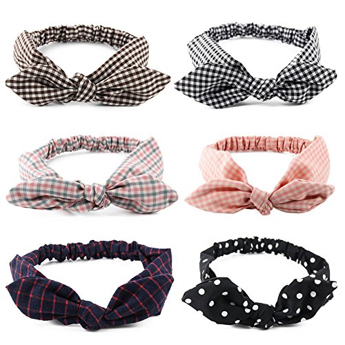 Yeshan Women and Girls Elastic Solid Bunny Ears Headband/Bandana/Turban/Headwrap Yoga Sports Bow Hairband,pack of 6