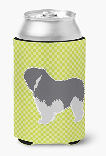 Caroline's Treasures BB3832CC Polish Lowland Sheepdog Dog Checkerboard Green Can or Bottle Hugger, Multicolor