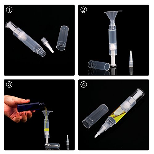 Funnels and brush: the funnels in the package make fill nail oil or lip oil into the tube easier; By twisting the pen, you can fill the liquid with a the brush