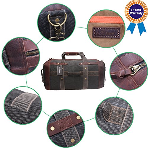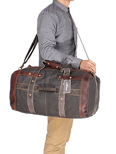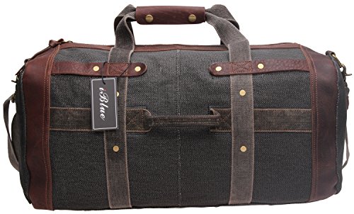 Iblue Weekender Bag Canvas Leather Mens Duffel Travel Overnight Tote 10183(grey)
