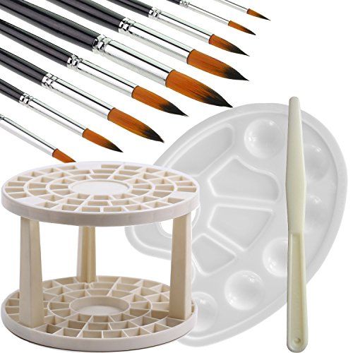 9pcs Watercolor Paint Brushes - Palette Tray - Brushes Organizer, Usparkle Professional Round Pointed Tip Watercolor Brushes Set for Art Painting, Watercolor, Acrylic Paint, Oil and Ink Painting