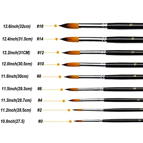 - Size of the 9pcs Watercolor Acrylic Paint Brushes: #0, #2, #4, #6, #8, #10 ,#12,#14 and #16