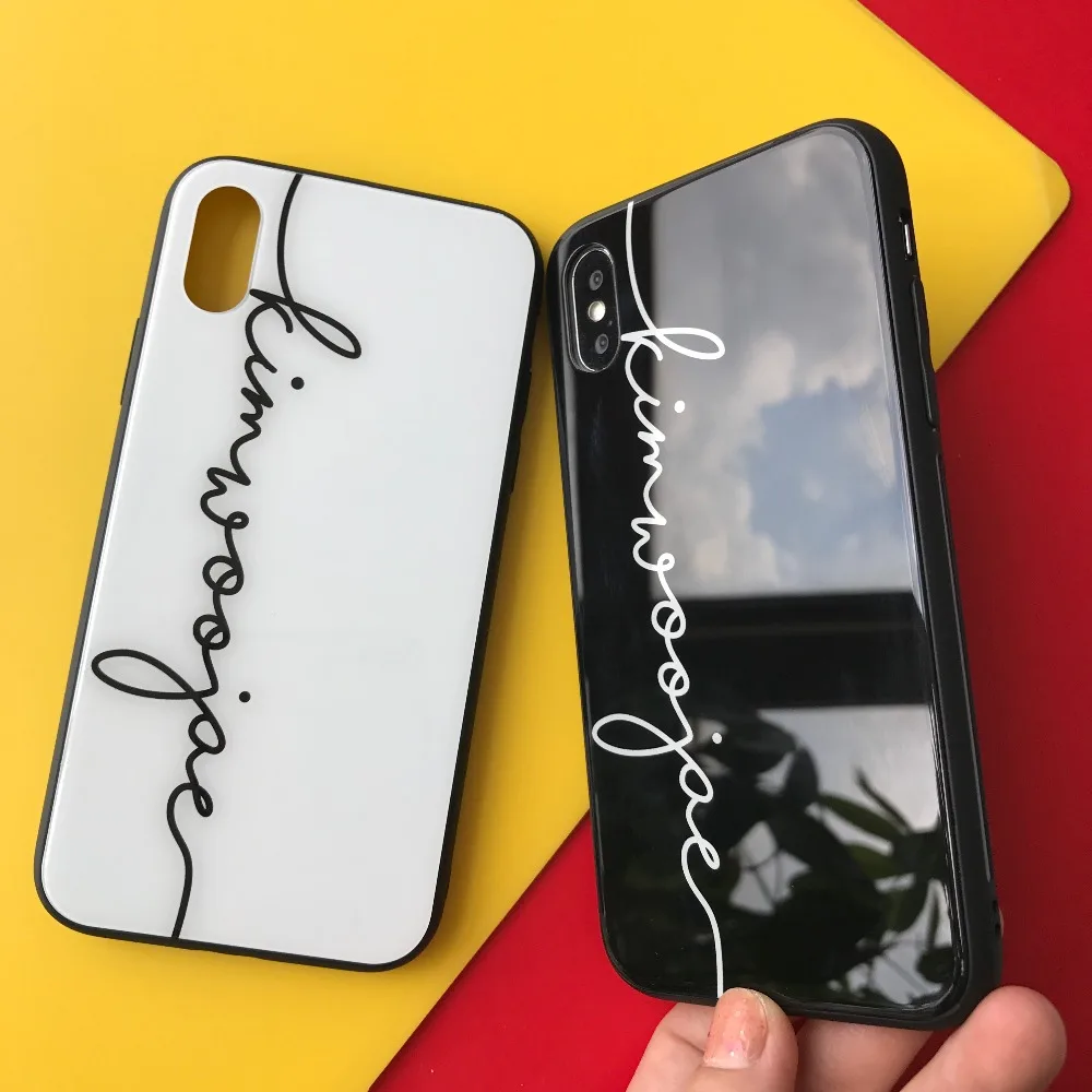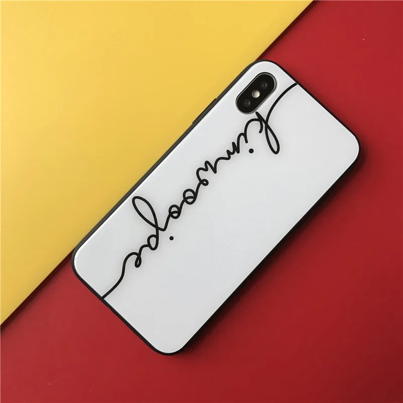 Size:Simple Letter Couple Case for iphone 7 6 6s plus Hard Tempered Glass