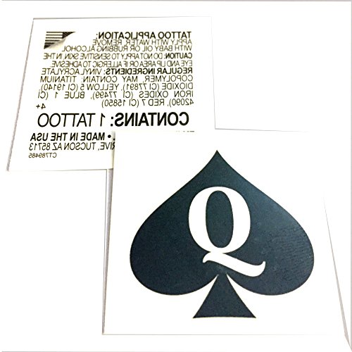 15 XQueen of Spades Temporary Tattoos - with Thick Spade for Swingers and Cuckold Alternative Lifestyle Water Based Temporary Removable Tattoos 1.5 in. by 1.5 in. size ( 3.81cm X 3.81cm ) Can last for days ! For removing the tattoo just use soap or rubbing Alcohole to get it easy off.