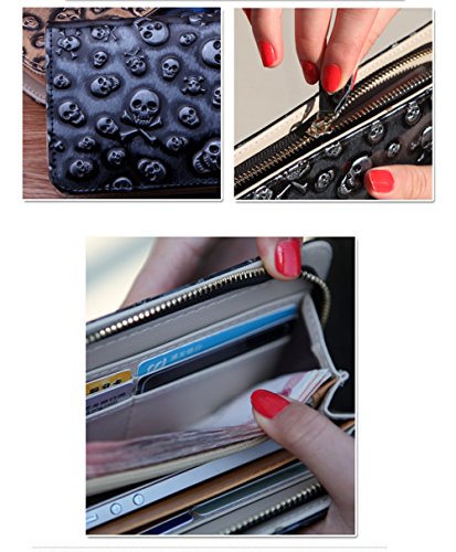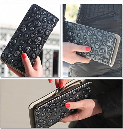 -. Feature : Size:21x10x3CM(LxHxW), The new brand (E-Clover) was designed from Dec 17 / Beautiful handmade women's wallet in an amazing Skull Patten! All vegan materials. Simply fantastic! / Features include credit card slots, two pockets for papers, coupons, checkbook, etc. / And a zipper compartment for coins and any other items you want to keep extra secure. / And it also can Allow you easy and convenient insert and remove your phone by using this Wallet.