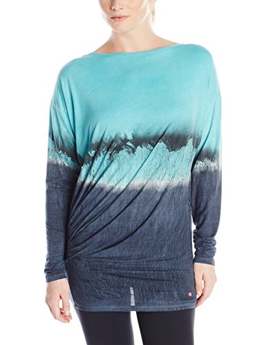 Pink Lotus Women's City Skyline Street Lights Pleated Tee with Novelty Dye, Turquoise, Large