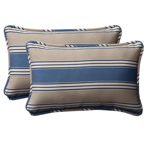Pillow Perfect Decorative Blue/Tan Striped Toss Pillows, Rectangle, 2-Pack