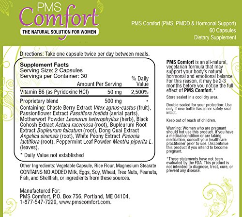 -. Feature : Doctor-designed, custom-formulated, clinically-tested, supports your body / Safe, gentle, effective: PMS Comfort herbal = natural solution for women with PMS & PMDD symp for 1 month / High potency purified herbal extract, no weak powdered herbs, no artificial colors, sugar, gluten, wheat or yeast / Manufactured in state of the art FDA cGMP facility in USA / See below for product description information