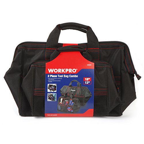 WORKPRO 2-Piece 13-inch &18-inch Tool Bag Combo, Zip-Top, Wide Open Mouth Storage