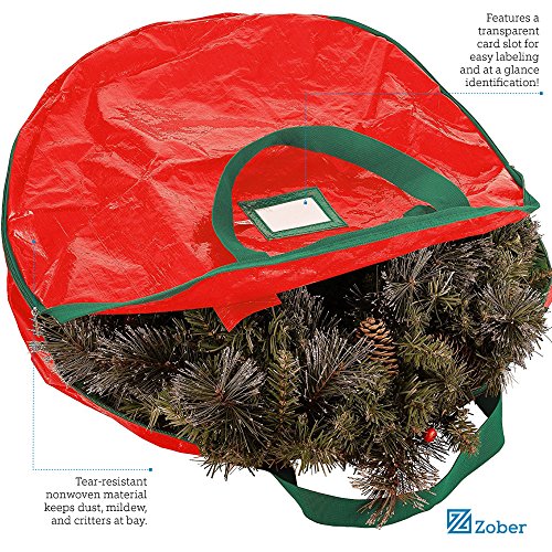 TOP QUALITY PROTECTION - Keep your precious wreaths in tip top shape and shield them from damages and debris just in time for the holidays with this Premium Quality Christmas Wreath Storage Bag by Zober for wreaths up to 24” in diameter.