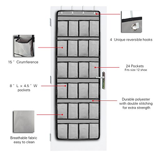 -. Title : 24 Pockets - OVER THE DOOR SHOE RACK and Closet Organizer System for Maximizing Storage,4 Customized Over the Door Hooks