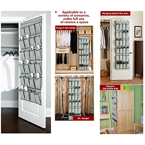 -. Feature : ✔4 METAL HANGERS -FOR STURDY HANGING:Using many other hanging shoe organizers, we include FOUR over the door hooks (not three which make the organizer much less robust) and sturdy METAL hooks (not cheap plastic ones that break easily). / ✔FOLDABLE DESIGN TO SAVE SPACE :Pockets are made of material is breathable oxford, and collapsible feature helps you save space when not in use. / ✔LDEA LFOR EVERY SHOE LOVE:Each of the 24 pockets are large enough to fit one mens size 12 shoe or one pocket can fit a pair of flats or sandals, meaning you can store between 12 and 24 pairs of shoes in this awesome alternative to a bulky shoe cubby or over the door shoe rack! Hang your over door shoe organizer flat behind / ✔VERSATILE:Our line of Door Hanging Bag itens Store anything From handbags,belts,shoes,clothing&stores your items within reack! to keep all your items neat and organized / ✔BUY NOW WITH CONFIDENCE : Our Unconditional Satisfaction Guarantee - ABSOLUTELY NO RISK TO YOU! We offer a REPLACEMENT PRODUCT or REFUND if for any reason you are unhappy with your purchase!