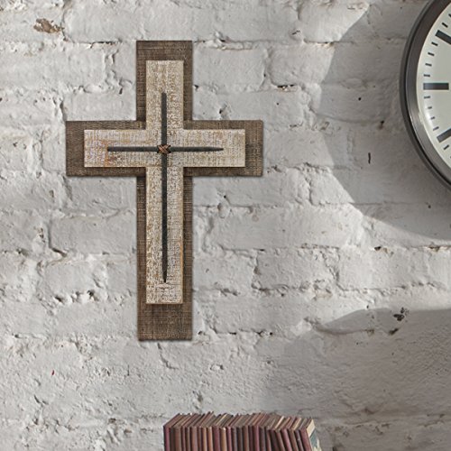 - Display your faith and add a vintage flare to your home with Stonebriar's decorative worn white and brown wood hanging wall cross